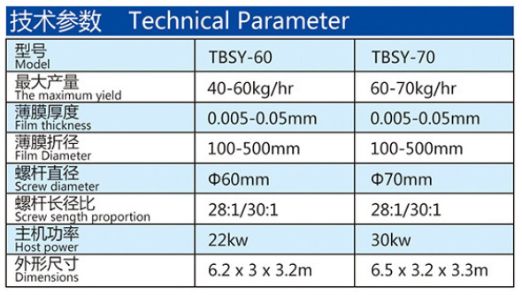 吹制各種規(guī)格的低密度聚乙烯、高密度聚乙烯和線(xiàn)性低密度聚乙烯塑料薄膜,廣泛應(yīng)用于食品百貨、日用、化工、針紡品、購(gòu)物禮袋和工業(yè)包裝。機(jī)筒、螺桿采用38CrMoAl合金材料經(jīng)氮化處理精密加工而成,具有很好的耐磨和耐腐蝕性。