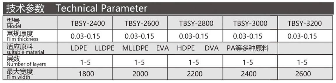 自動測厚風(fēng)環(huán),自動供料系統(tǒng),IBC內(nèi)冷模頭,邊料回收機(jī),電暈機(jī)。